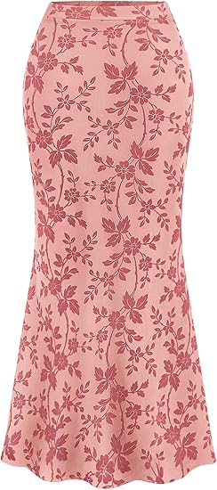 Womens Floral Mesh Maxi Skirt Spring Summer Elastic High Waisted Boho Elegant Mermaid Long Skirts for Women